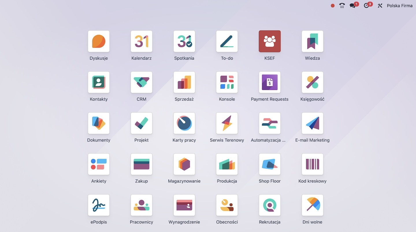 Integracja działa z uwzględnieniem wielu firm w Odoo — wysyłka i odbiór dokumentów są odpowiednio rozdzielone.